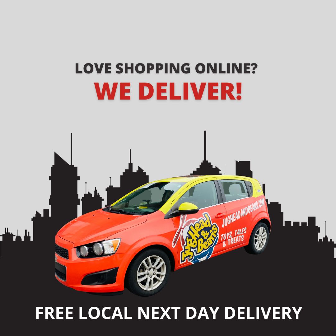 DirectionsAt Jughead and Bean’s we are bringing the delight back to toy shopping. We offer not only thoughtfully crafted toys, tales, and treats, but also a customized shopping experience with personalized delivery options.